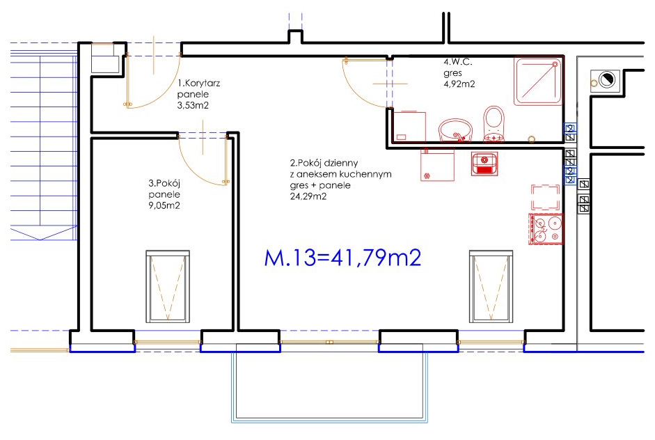 Nowe mieszkanie CM-13 w dzielnicy Grzybowa o pow. 41,79 m2